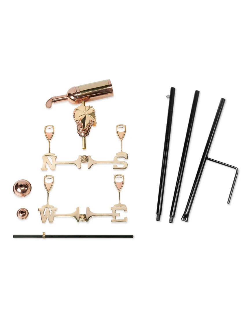 There’s no better way to show off your refined taste than by raising this elegant wine bottle weathervane filling four goblets to adorn the rooftop of smaller structures, sheds, and gazebos. For over 35 years Good Directions pure copper Weathervanes have been unsurpassed in style, quality, and durability – perfect for the house-proud homeowner. Bring the Joy of Outdoor Livingâ„ to your home with this heirloom-quality piece. It is also perfect for your garden landscape. 3-piece pole mount included. Lifetime Warranty. The pure copper will age naturally over time.